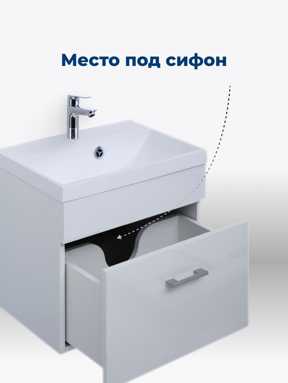 Тумба с раковиной Алвита New 60 2 ящика подвесная белая матовая 34 295 ₽