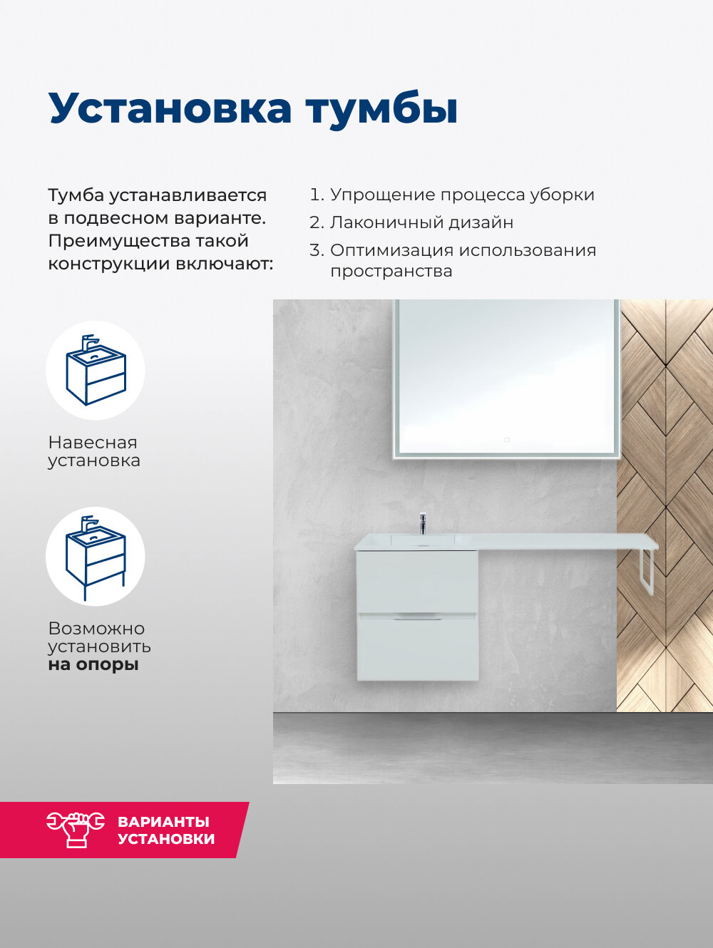 | Дополнительная информация | Тумба предлагается без раковины |