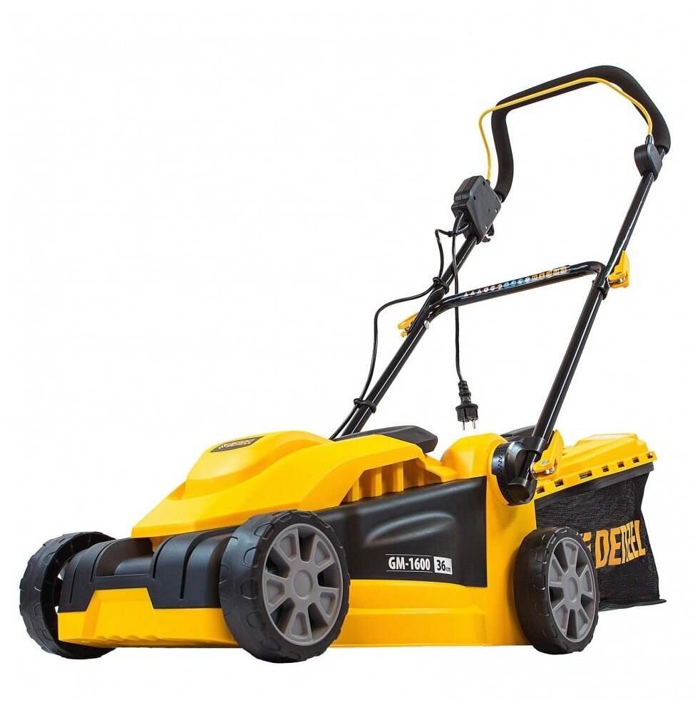 Газонокосилка электрическая DENZEL GM-1600, 1600 Вт, ширина 36 см, 3 уровня, 35 л информация: