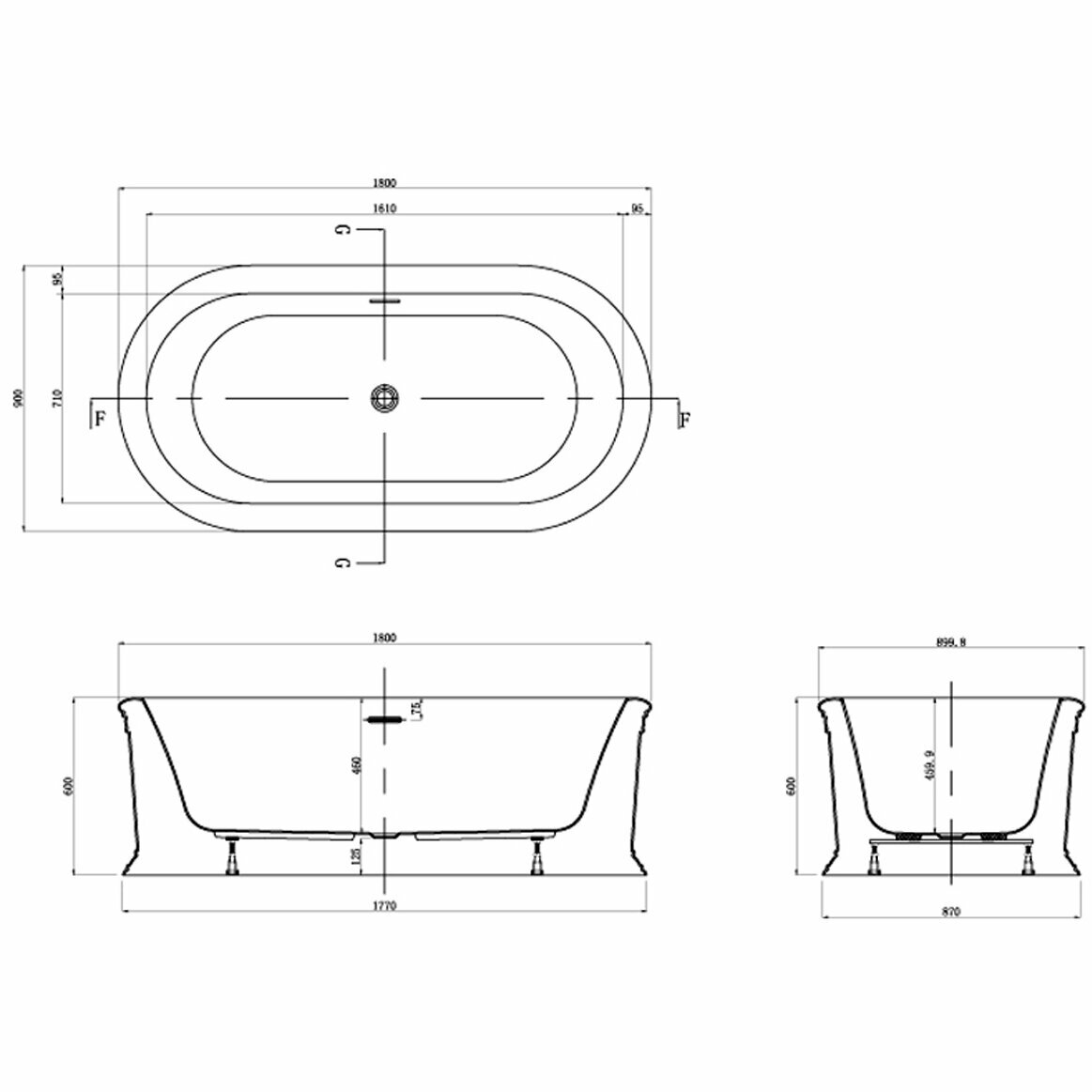 Отзывы на Ванна акриловая AZARIO TOUR 1800x900x600, свободностоящая, в комплекте с сифоном и металлической рамой, белая TOU18090