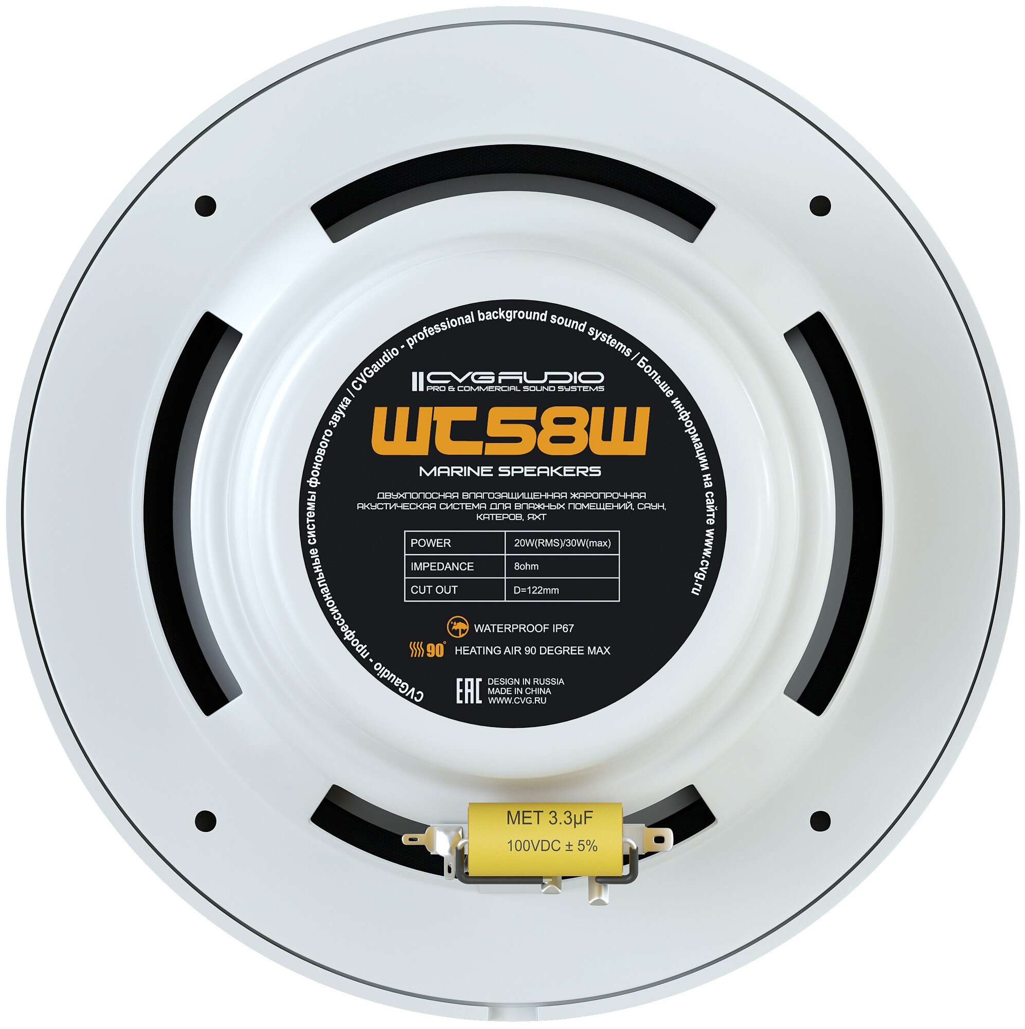 10 цен на Акустические системы CVGAUDIO WT58W встраиваемые, для помещений с высокой влажностью (IP66) и температурой (90С), 20W(RMS) / 30W(max), 8ohm