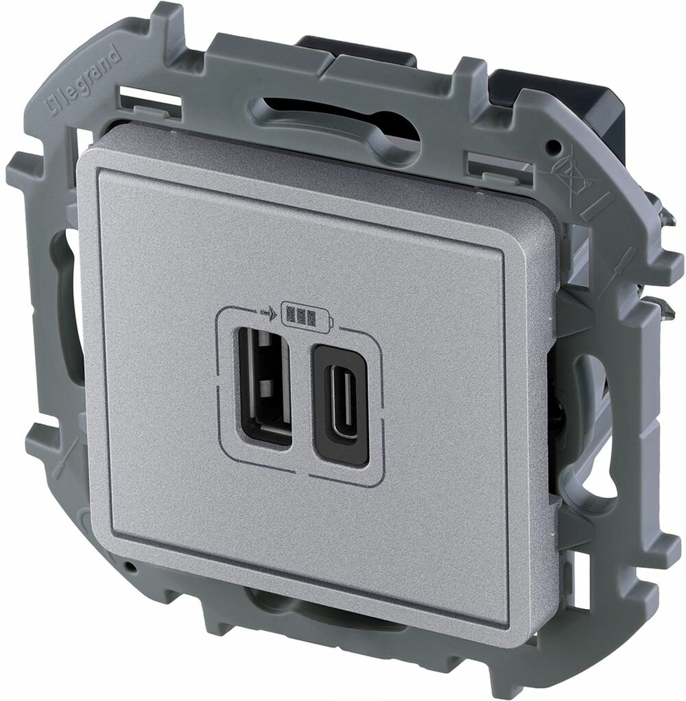 Зарядное устройство USB Legrand Inspiria, USB-A + USB-C, 3A (Алюминий)