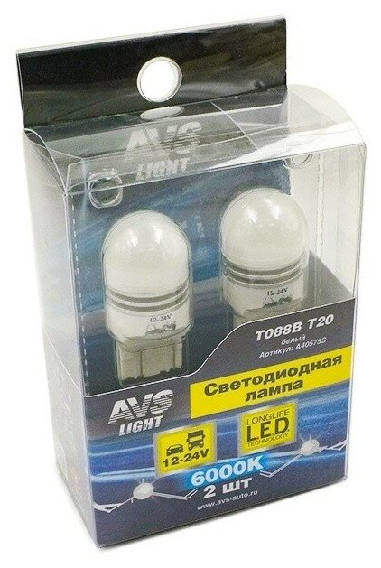Отзывы на Лампа автомобильная светодиодная AVS A40575S (T088B T20/белый/(W3x16q) 6SMD 3030, 2 contact(7443),10-30V коробка 2 шт)