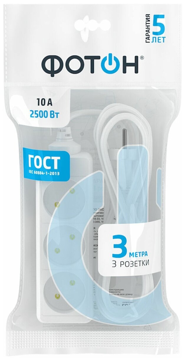 Отзывы на Удлинитель сетевой "фотон" 10-33, 3м, 3 розетки, белый без заземления
