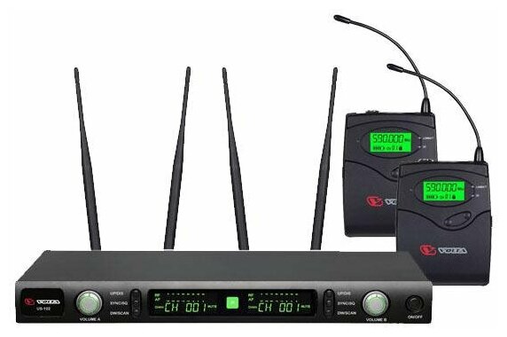 VOLTA US-102H with aluminuim case (572-611MHz) Микрофонная 100-канальная радиосистема с 2 головными конденсаторными микрофонами UHF диапазона (572-611