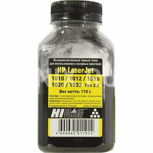 Тонер Hi-Black для HP LJ 1010/1012/1015/1020/1022, Тип 2.2, Bk, 110 г, банка, черный