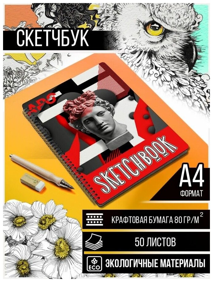 10 цен на Скетчбук, Блокнот, A4 50 крафт листов школа - 3201