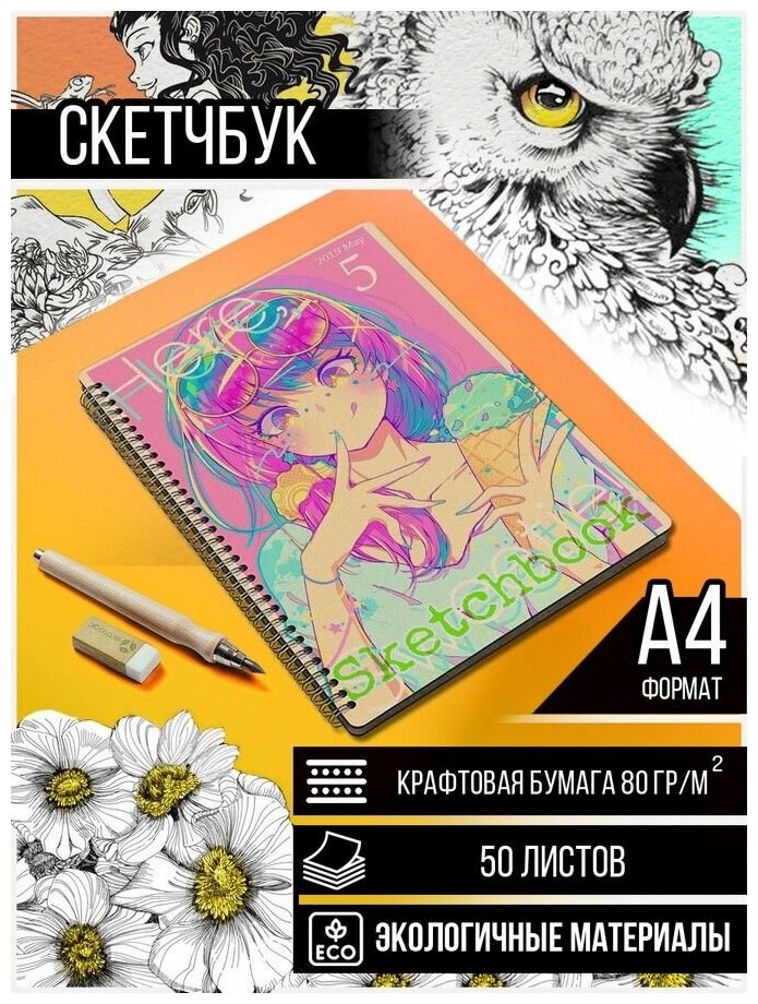 10 цен на Скетчбук, Блокнот, A4 50 крафт листов Девушка - 2059