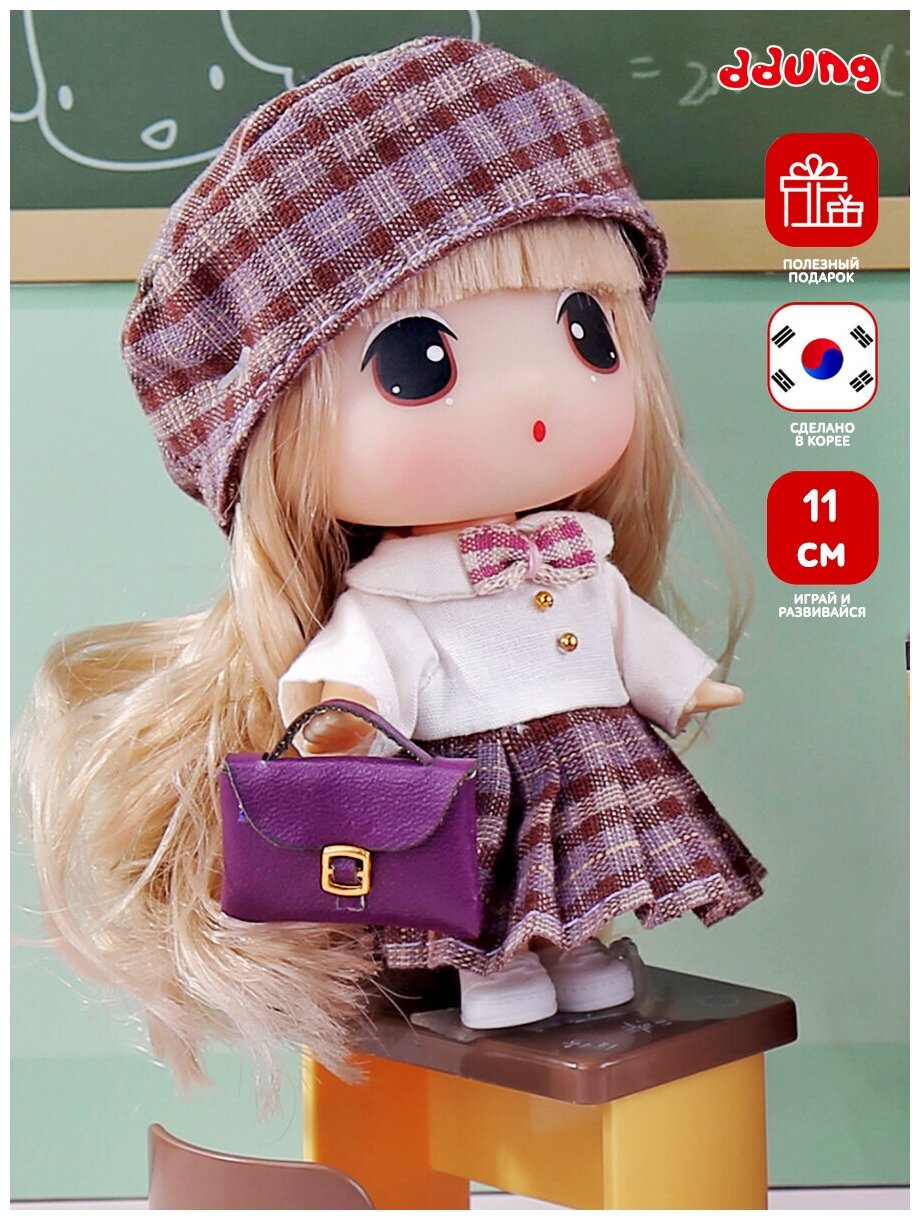 10 цен на Коллекционная Игрушка для Детей Кукла DDung из серии Школа, Блондинка в Клетчатой Форме за Партой с Аксессуарами Пупс Дун Данг, 11 см FDE0907-4