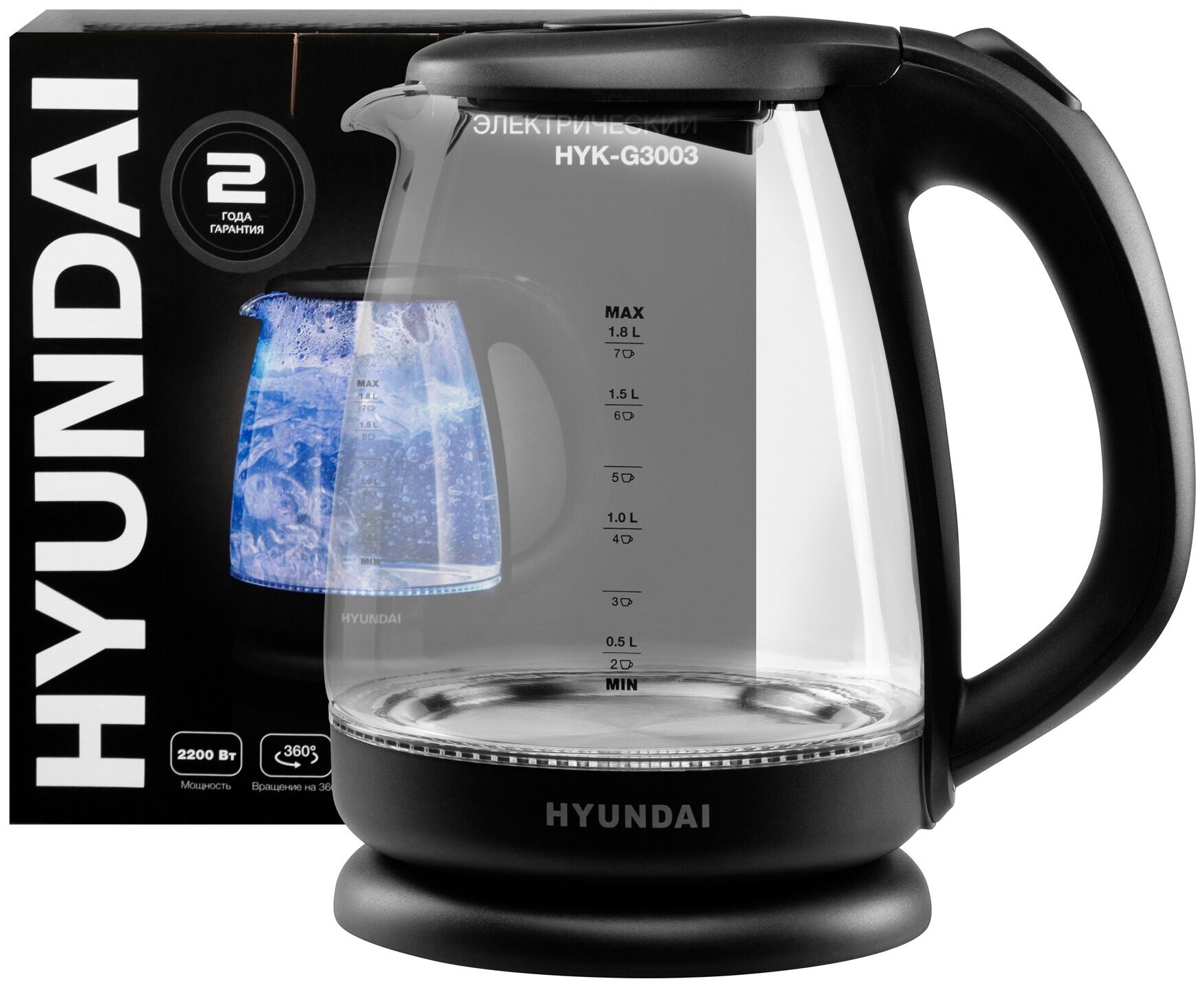 Отзывы на Чайник электрический Hyundai HYK-G3003 1.8л. 2200Вт черный (корпус: стекло)