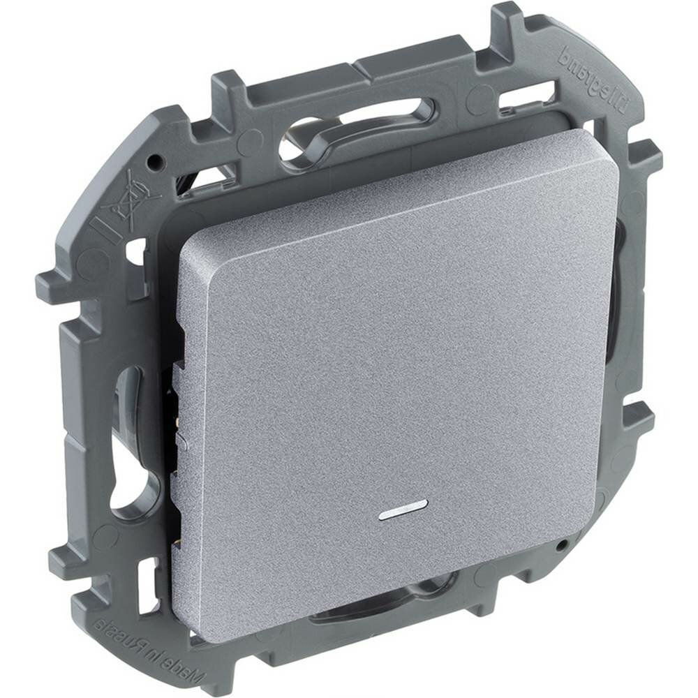 (1 шт.) Legrand INSPIRIA Алюминий Переключатель1-клавишный с подсветкой IP20 скрытая установка 673662