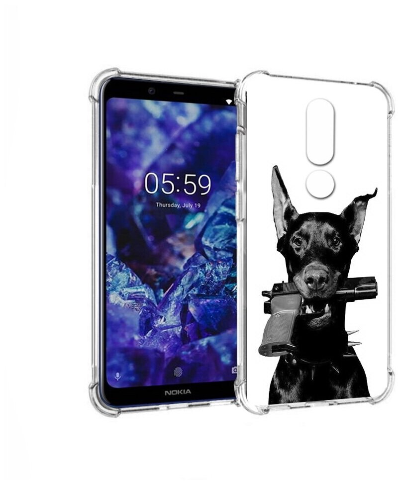 Чехол задняя-панель-накладка-бампер MyPads доберман с пистолетом для Nokia 5.1 Plus/Nokia X5 противоударный информация:
