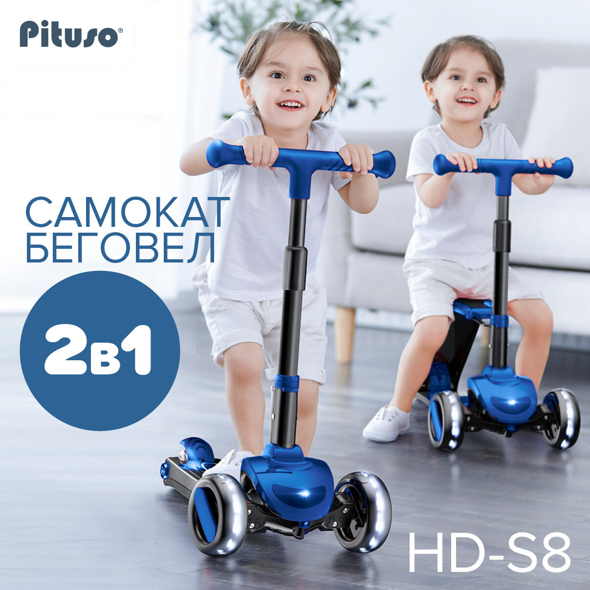 Самокат трехколесный детский Pituso HD-S8, беговел с сиденьем, регулировкой высоты руля, светящиеся колеса, цвет синий 6 300 ₽