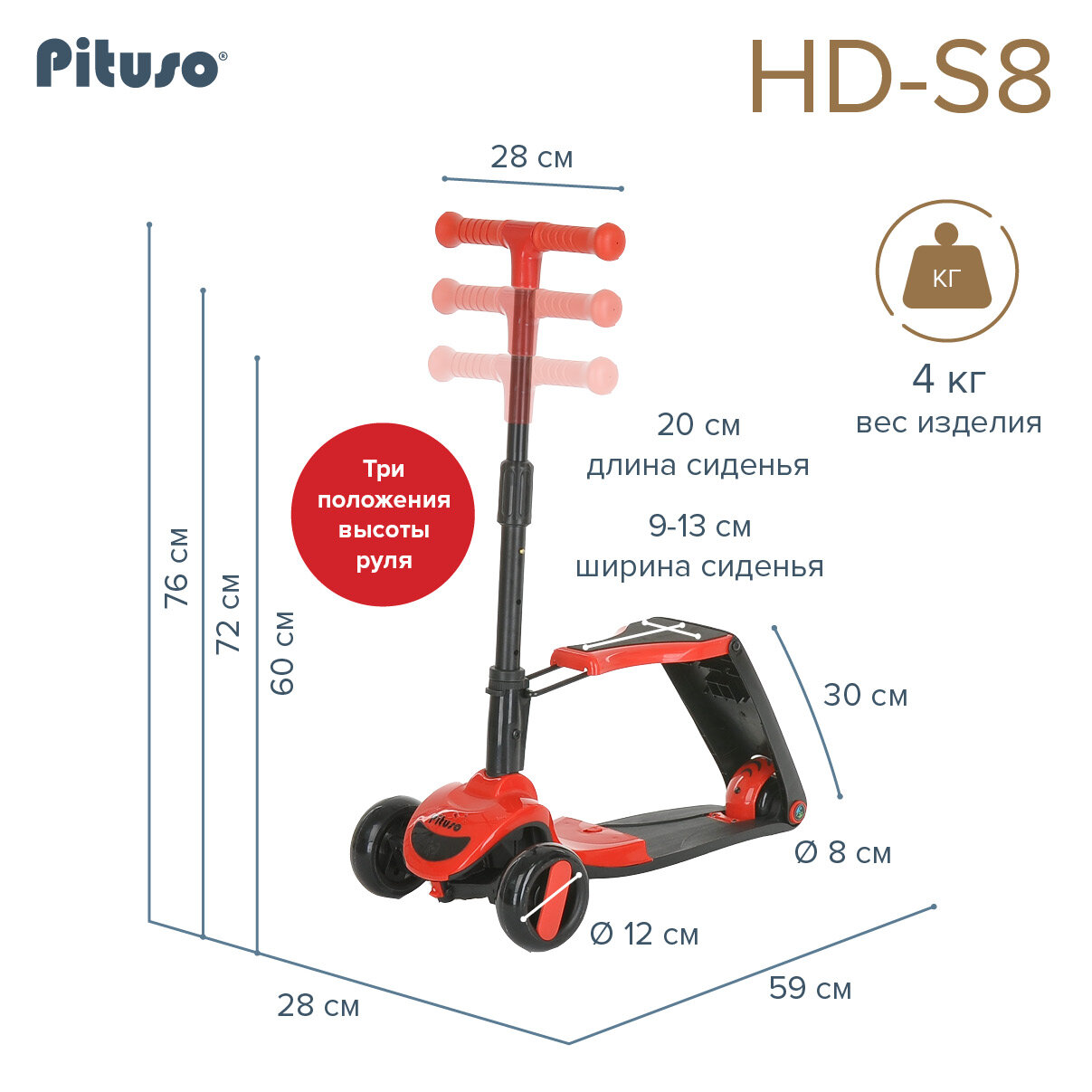 Трехколесный самокат Pituso 2в1 HD-S8 Red/красный информация: