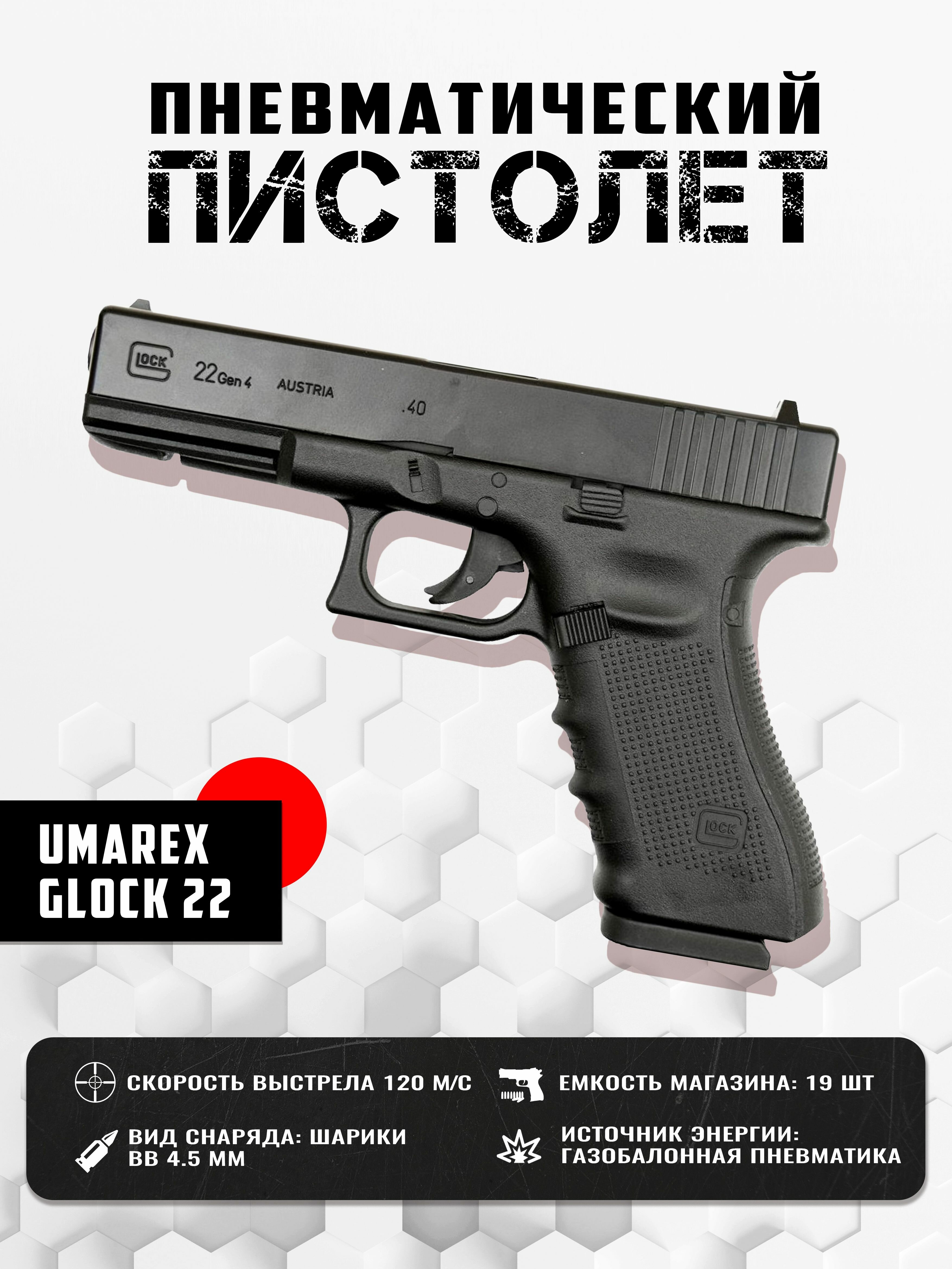 Мы выбрали 10 лучших цен на Пистолет пневматический Umarex Glock 22 кал.4,5мм. Перед тем как купить Пистолет пневматический Umarex Glock 22 кал.4,5мм посмотрите найденные предложения из Яндекс Маркета и других сайтов на основе XML фидов.