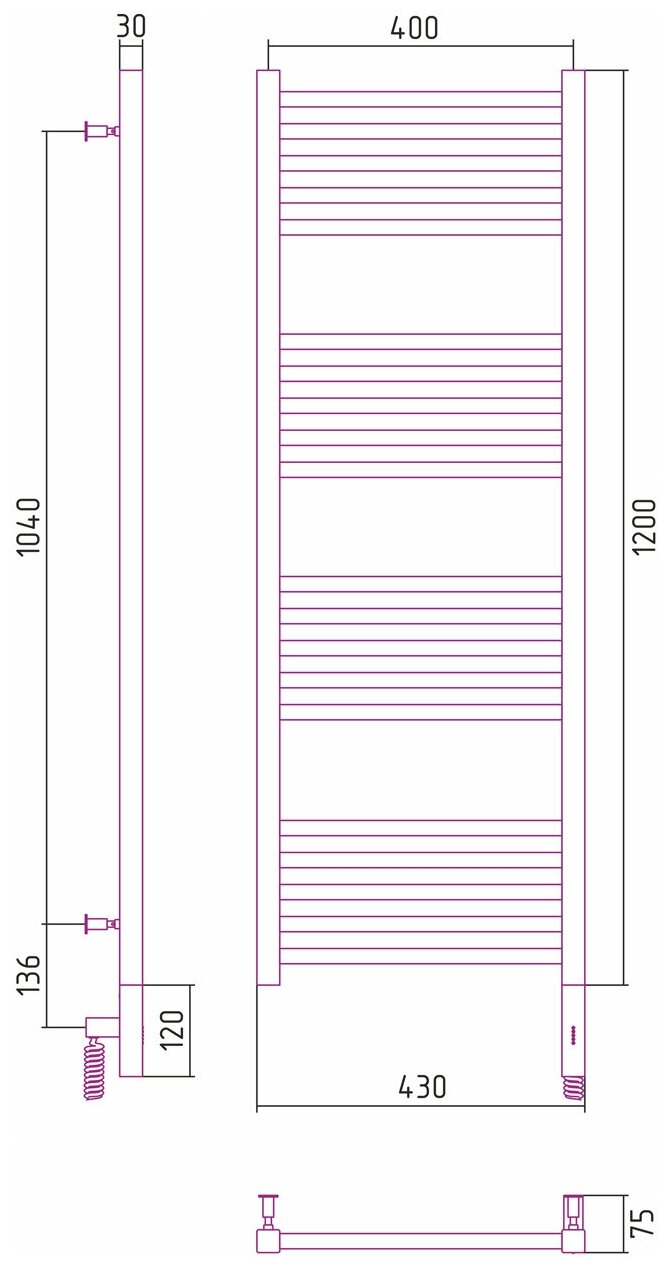 Электрический полотенцесушитель Сунержа Богема 3.0 прямая 600x400 ЛТЭН