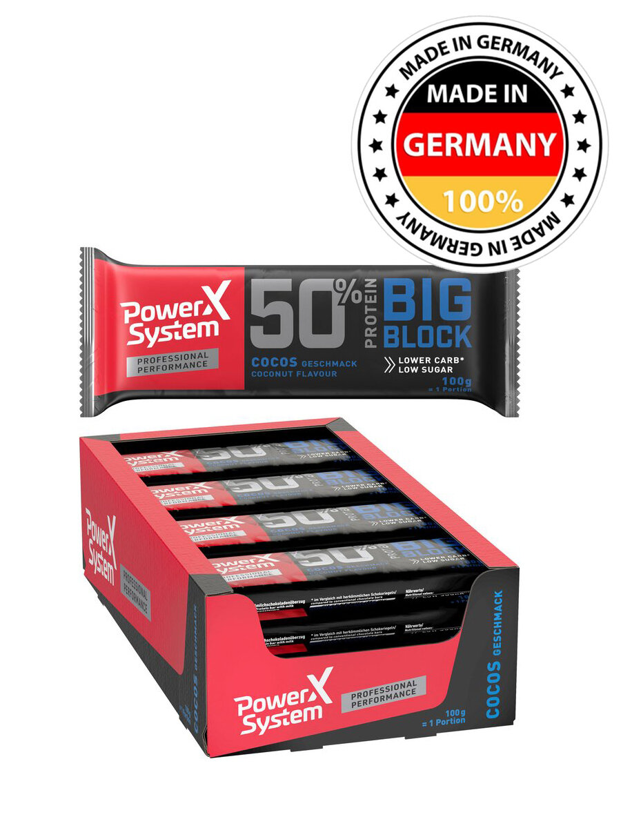 10 цен на Протеиновый батончик с 50г белка / Power System Big Block Protein Bar (Кокос) 16х100г / 50% белка с коллагеном для похудения и набора мышечной массы