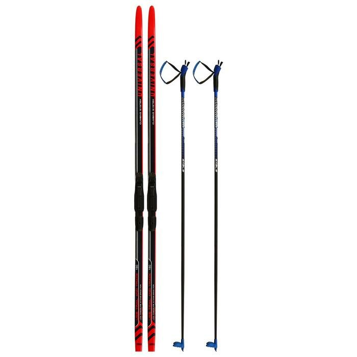 Комплект лыжный: пластиковые лыжи 190 см с насечкой, стеклопластиковые палки 150 см, крепления SNS «бренд ЦСТ Step», цвета микс информация: