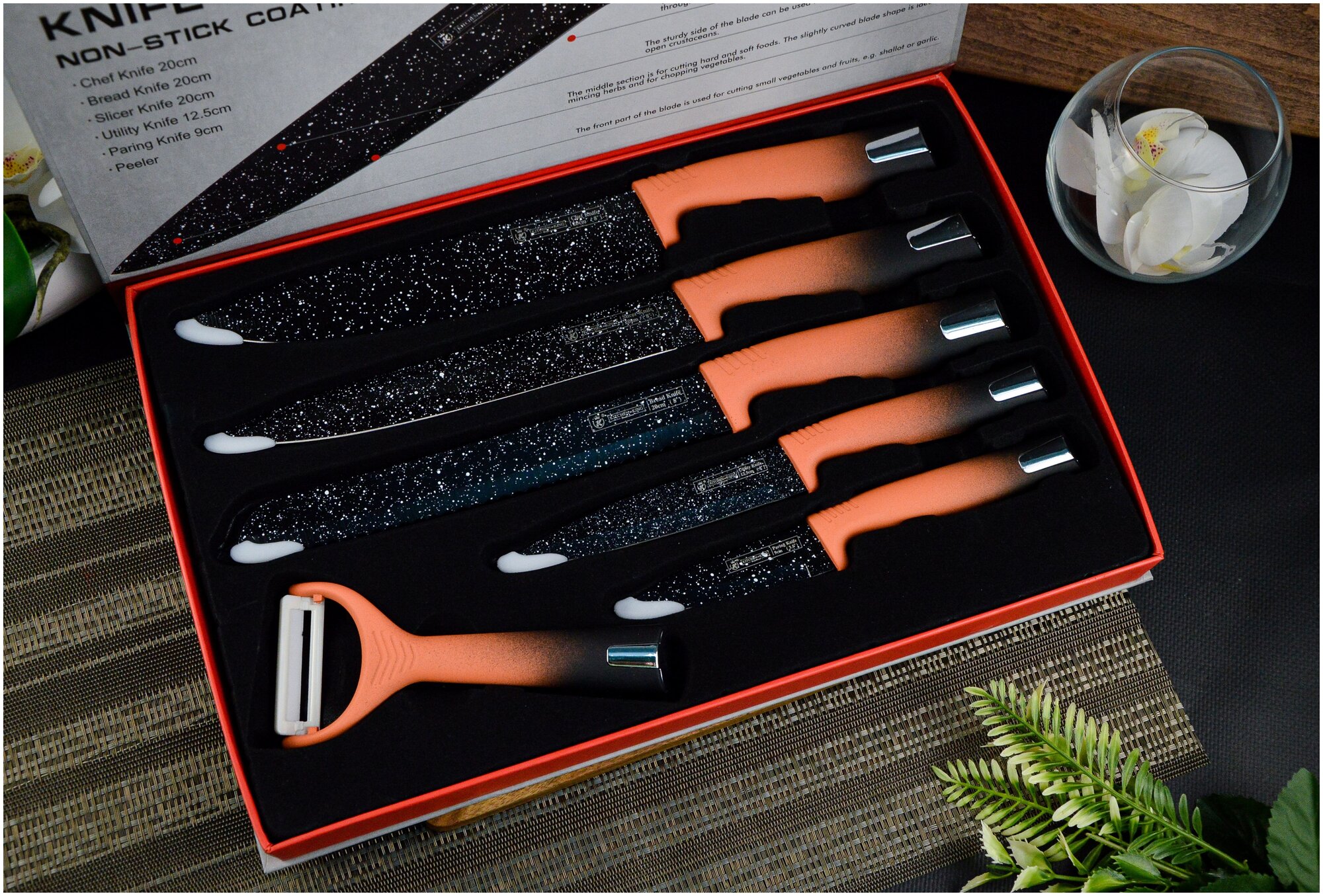| Типы ножей в наборе | нож для овощей, нож для хлеба, универсальный нож, шеф-нож |
