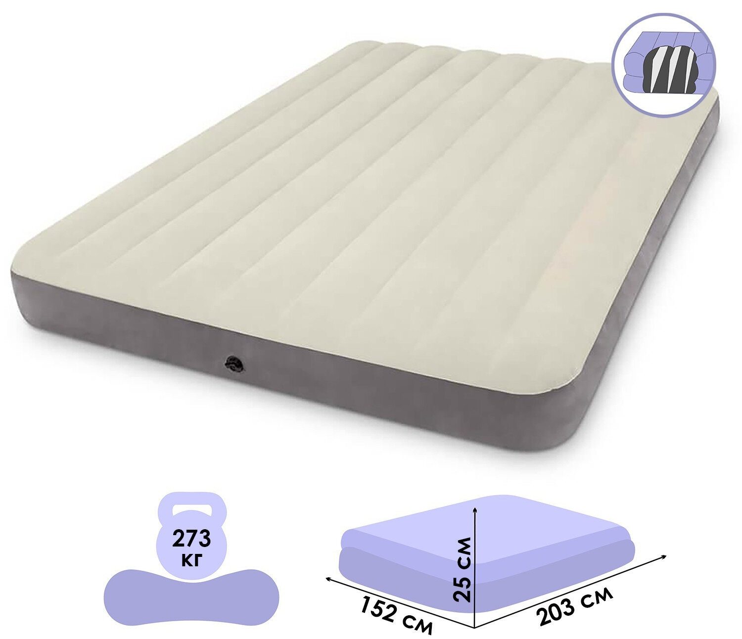 Матрас одинарный надувной Intex queen 152х203х25 см информация: