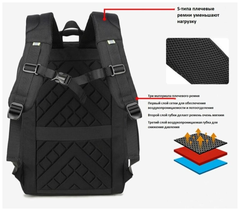 Рюкзак MyPads M-1946 из водонепроницаемого ПВХ для ноутбука 15.6/16/17/17.3 дюйма современный дизайн с USB и кодовым замком большой емкости черный