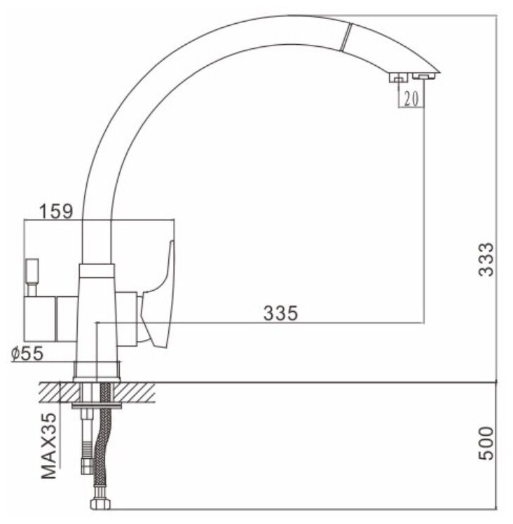 | Длина излива | 335 мм |