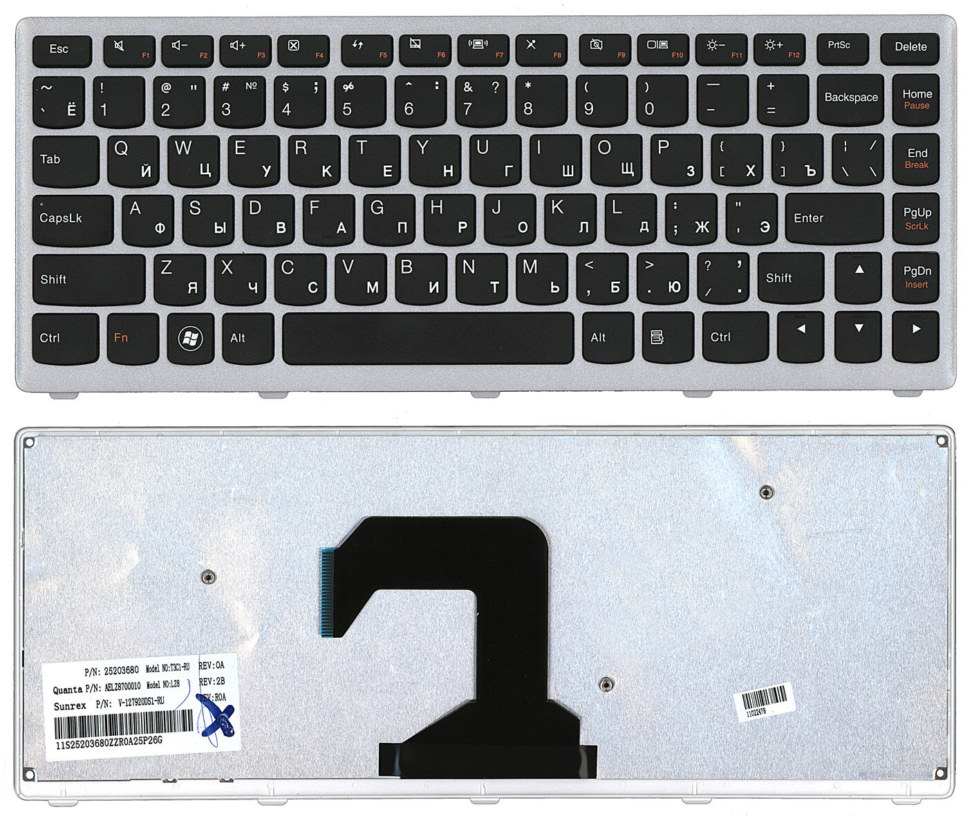 Клавиатура для ноутбука Lenovo 9Z.N7GSQ.401 черная с серебристой рамкой информация: