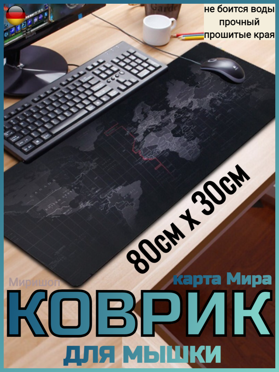 Коврик для мышки Карта Мира, 80x30 см информация: