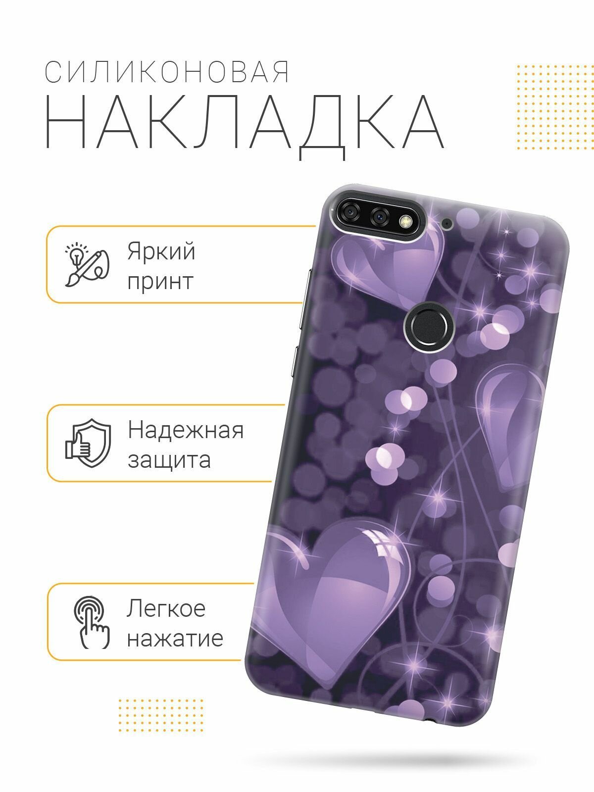 Силиконовый чехол на Honor 7C / 7A Pro / Huawei Y6 Prime (2018) / Хуавей Хонор 7А Про с эффектом блеска "Любовь в фиолетовом цвете" информация: