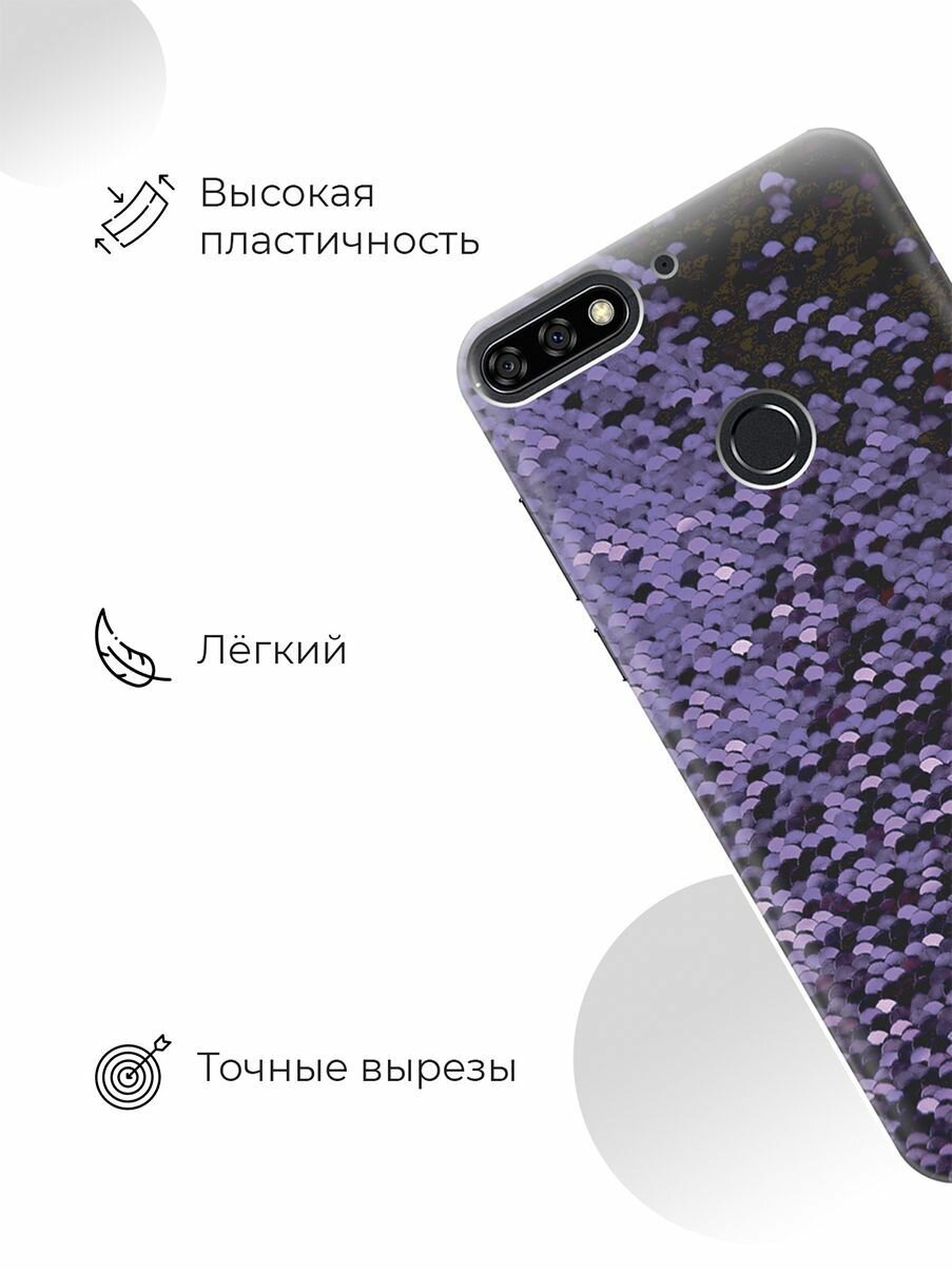 Силиконовый чехол Фиолетовые пайетки на Honor 7C / 7A Pro / Huawei Y6 Prime (2018) / Хуавей У6 Прайм 2018 / Хонор 7А Про / 7С информация: