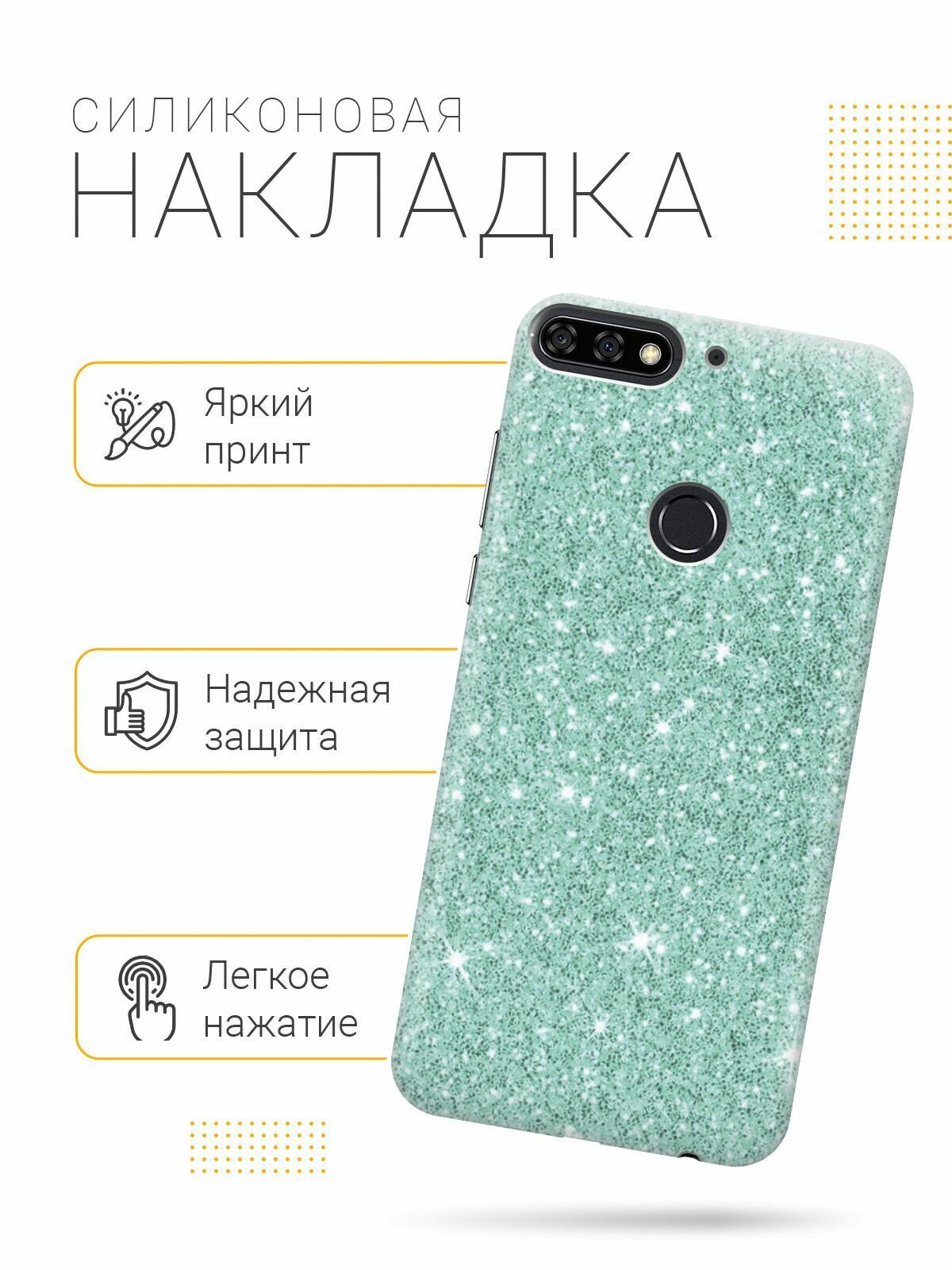 Отзывы на Силиконовый чехол на Honor 7C / 7A Pro / Huawei Y6 Prime (2018) / Хуавей У6 Прайм 2018 / Хонор 7А Про / 7С с эффектом блеска "Мятные блестки"