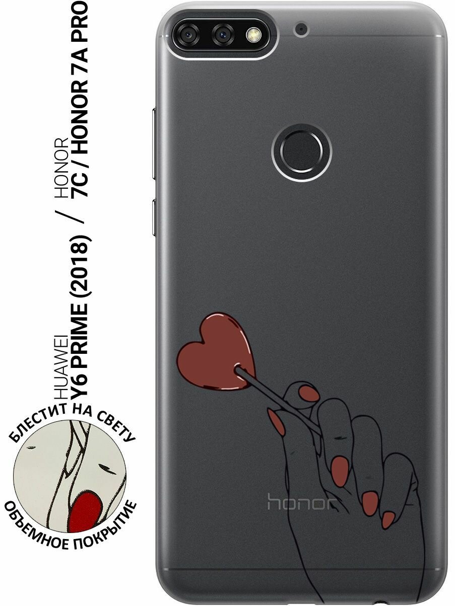 Силиконовый чехол на Honor 7C, 7A Pro, Huawei Y6 Prime (2018), Хуавей У6 Прайм 2018, Хонор 7А Про, 7С с 3D принтом "Heartbreaker" прозрачный 474 ₽