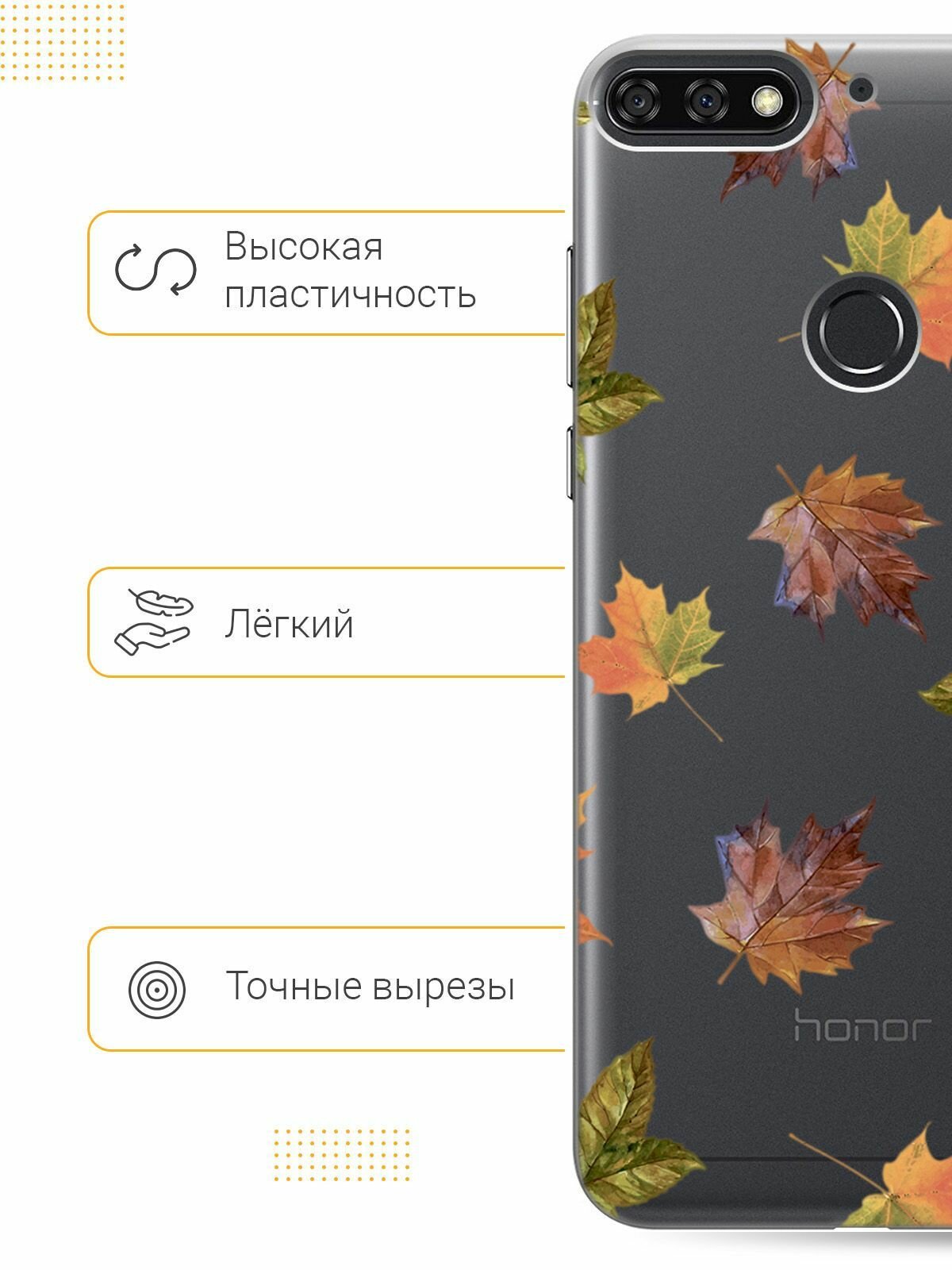 Отзывы на Силиконовый чехол на Honor 7C / 7A Pro / Huawei Y6 Prime (2018) / Хуавей У6 Прайм 2018 / Хонор 7А Про / 7С с 3D принтом "Maple" прозрачный