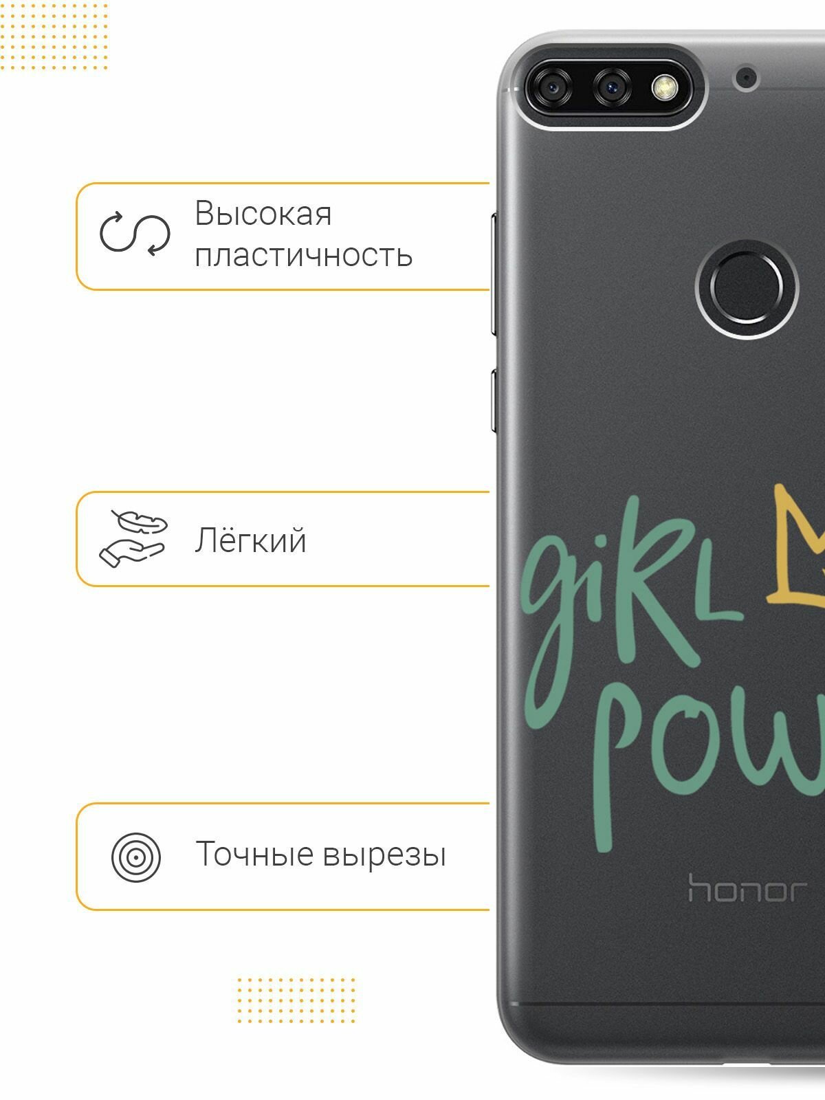 Отзывы на Силиконовый чехол на Honor 7C / 7A Pro / Huawei Y6 Prime (2018) / Хуавей У6 Прайм 2018 / Хонор 7А Про / 7С с 3D принтом "Girl Power!" прозрачный