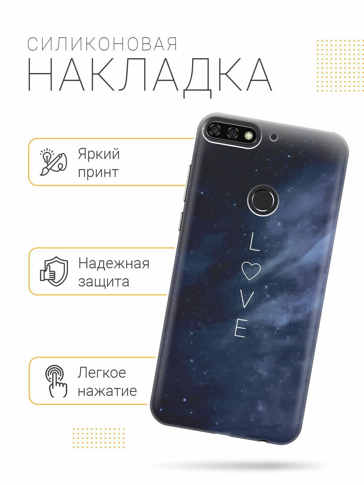 Силиконовый чехол на Honor 7C / 7A Pro / Huawei Y6 Prime (2018) / Хуавей У6 Прайм 2018 / Хонор 7А Про / 7С с принтом "Ночное небо и любовь" информация: