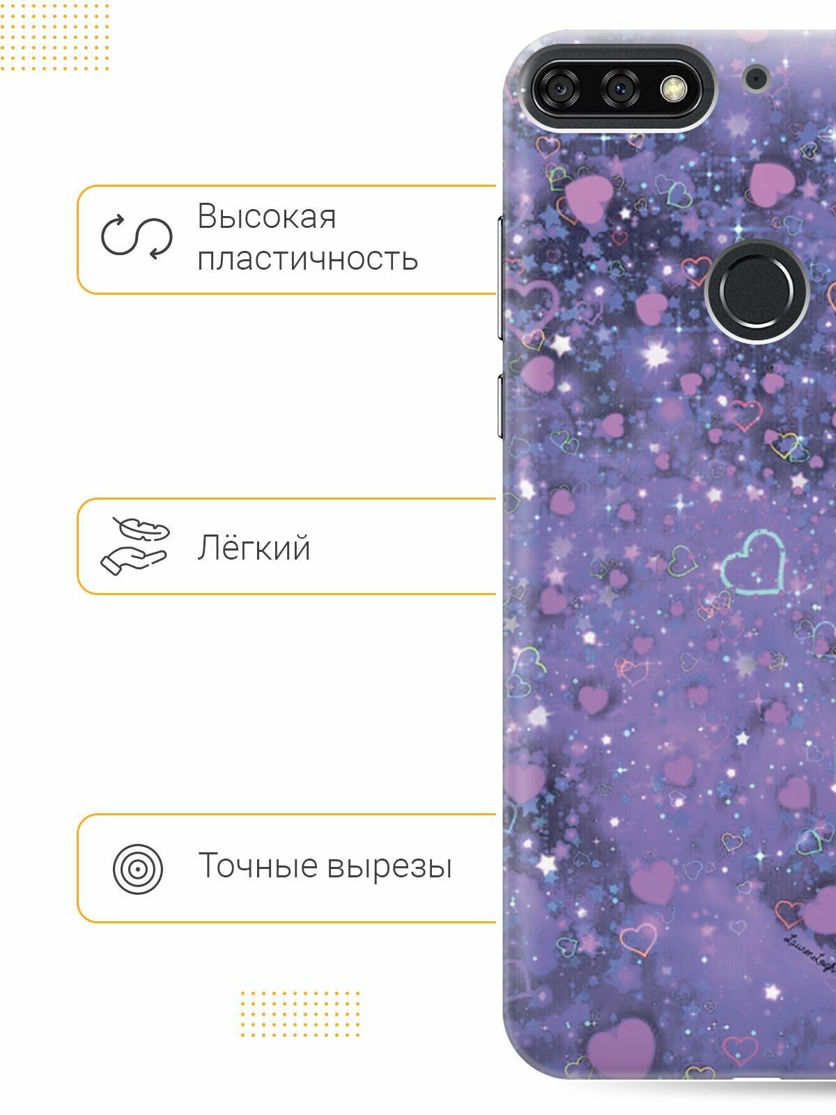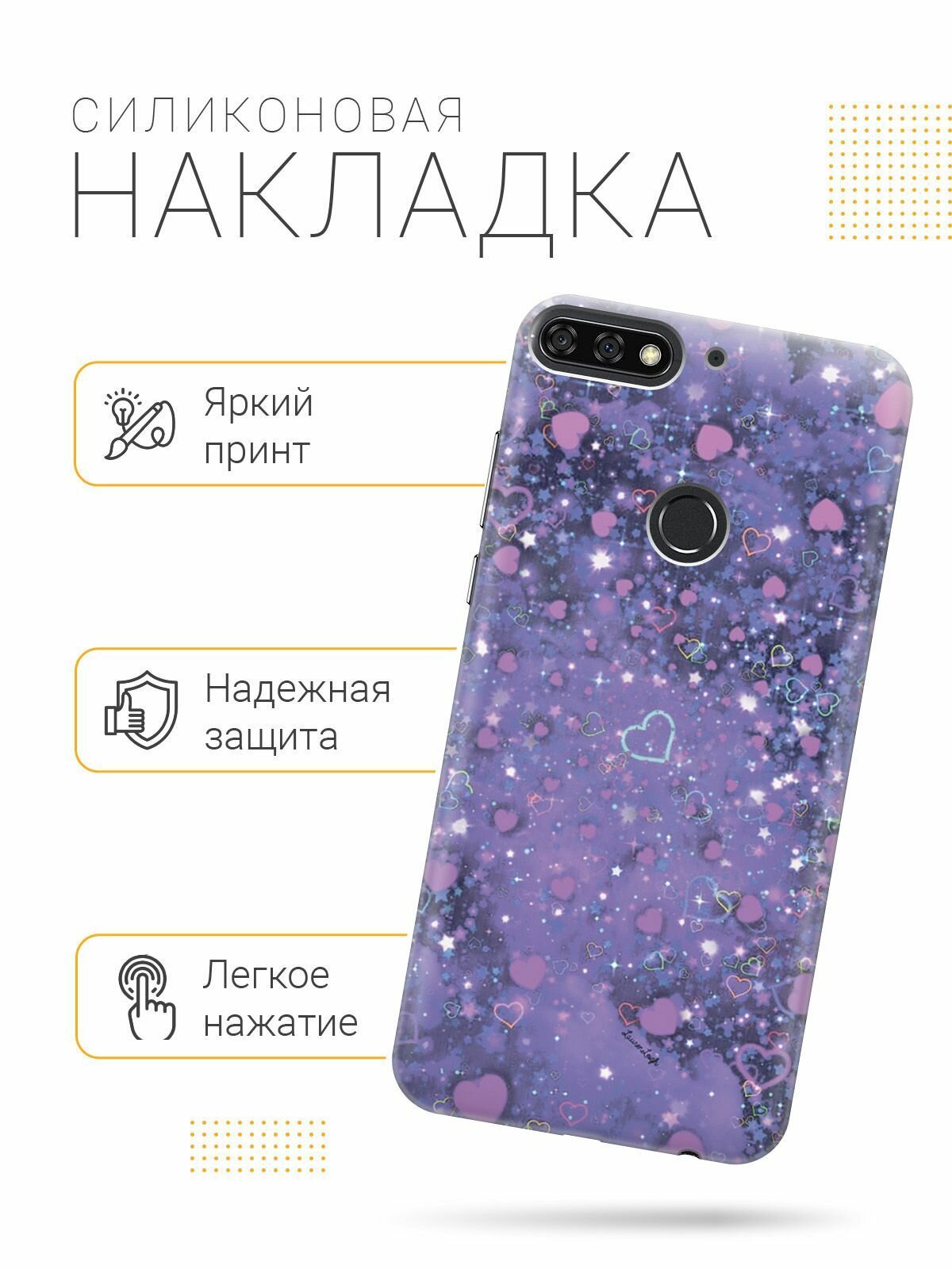 Отзывы на Силиконовый чехол на Honor 7C / 7A Pro / Huawei Y6 Prime (2018) / Хуавей У6 Прайм 2018 / Хонор 7А Про / 7С с эффектом блеска "Магические сердечки"