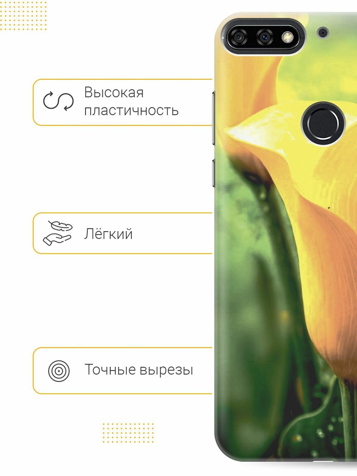 Отзывы на Силиконовый чехол на Huawei Y6 Prime (2018) / Honor 7C / Honor 7A Pro / Хуавей У6 Прайм 2018 / Хонор 7А Про / Хонор 7С с принтом "Желтые каллы"