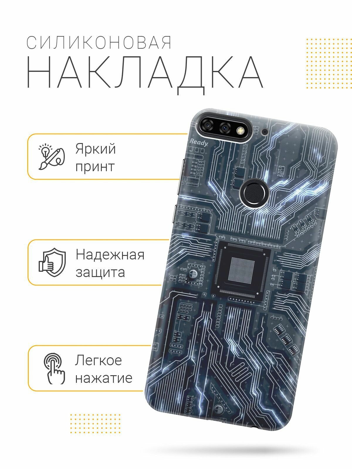Силиконовый чехол на Huawei Y6 Prime (2018), Honor 7C, Honor 7A Pro, Хуавей У6 Прайм 2018, Хонор 7А Про, Хонор 7С с принтом "Синяя микросхема" 459 ₽