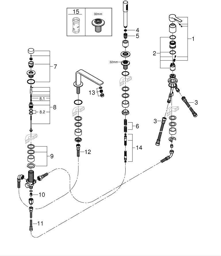 Отзывы на Смеситель для ванны GROHE Lineare New на 4 отверстия с душевым гарнитуром, хром (19577001)