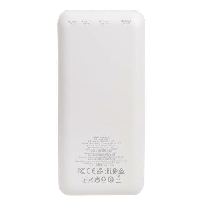Мобильный аккумулятор BOROFONE BJ27B Pindar, 30000mAh, индикатор, 2 USB выхода, микро USB, Type-C , 2.0A, белый (6974443388046)