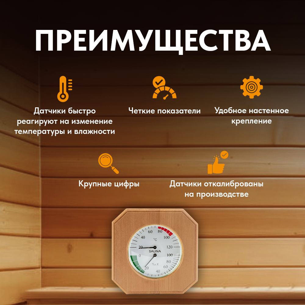 Барометр Север с гигрометром и термометром настенный деревянный