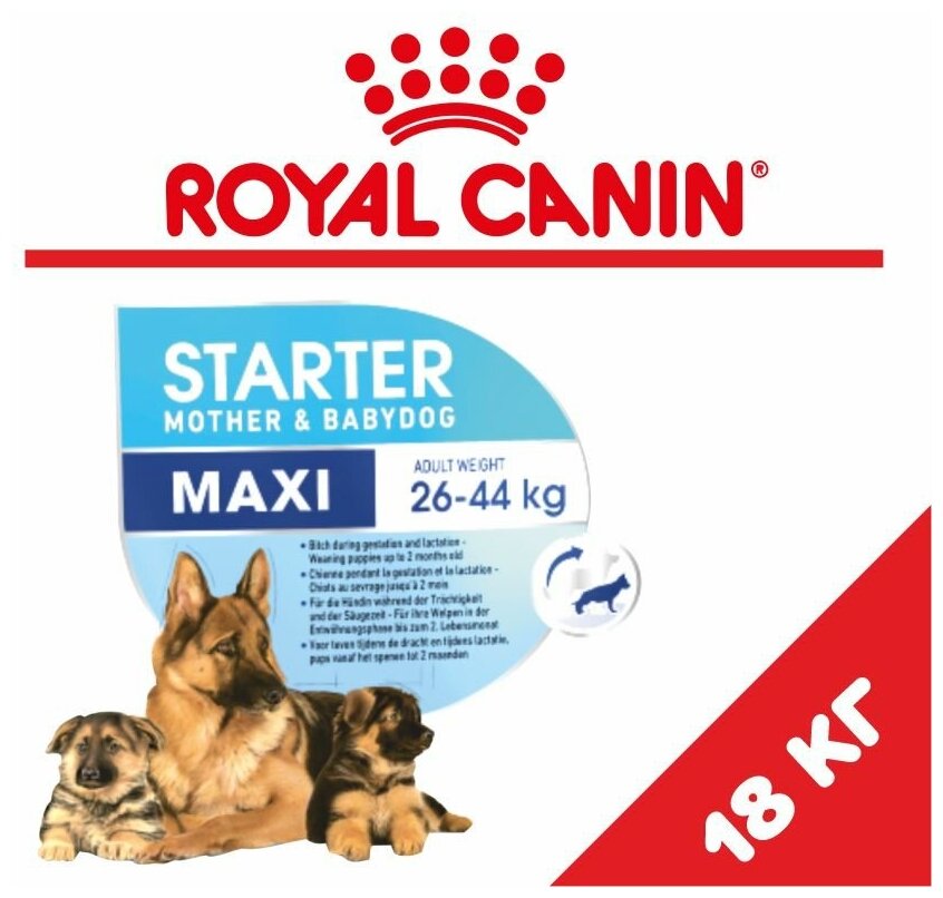 10 цен на Ройал Канин сухой корм щенки/кормящие/беременные для крупных пород Макси стартер 18кгг
