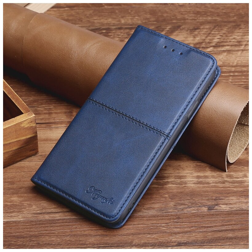 Отзывы на Чехол-книжка MyPads для OPPO Reno 6 4G из кожи, прошитый элегантной прострочкой Ретро синий с магнитной крышкой