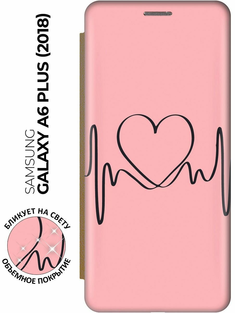 Чехол-книжка Сердцебиение на Samsung Galaxy A6+ (2018) / Самсунг А6 Плюс 2018 с эффектом блика золотой информация: