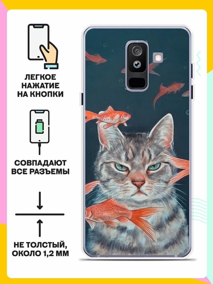10 цен на Силиконовый чехол на Samsung Galaxy A6 Plus (2018) Кот на рыбалке / для Самсунг Галакси А6 Плюс