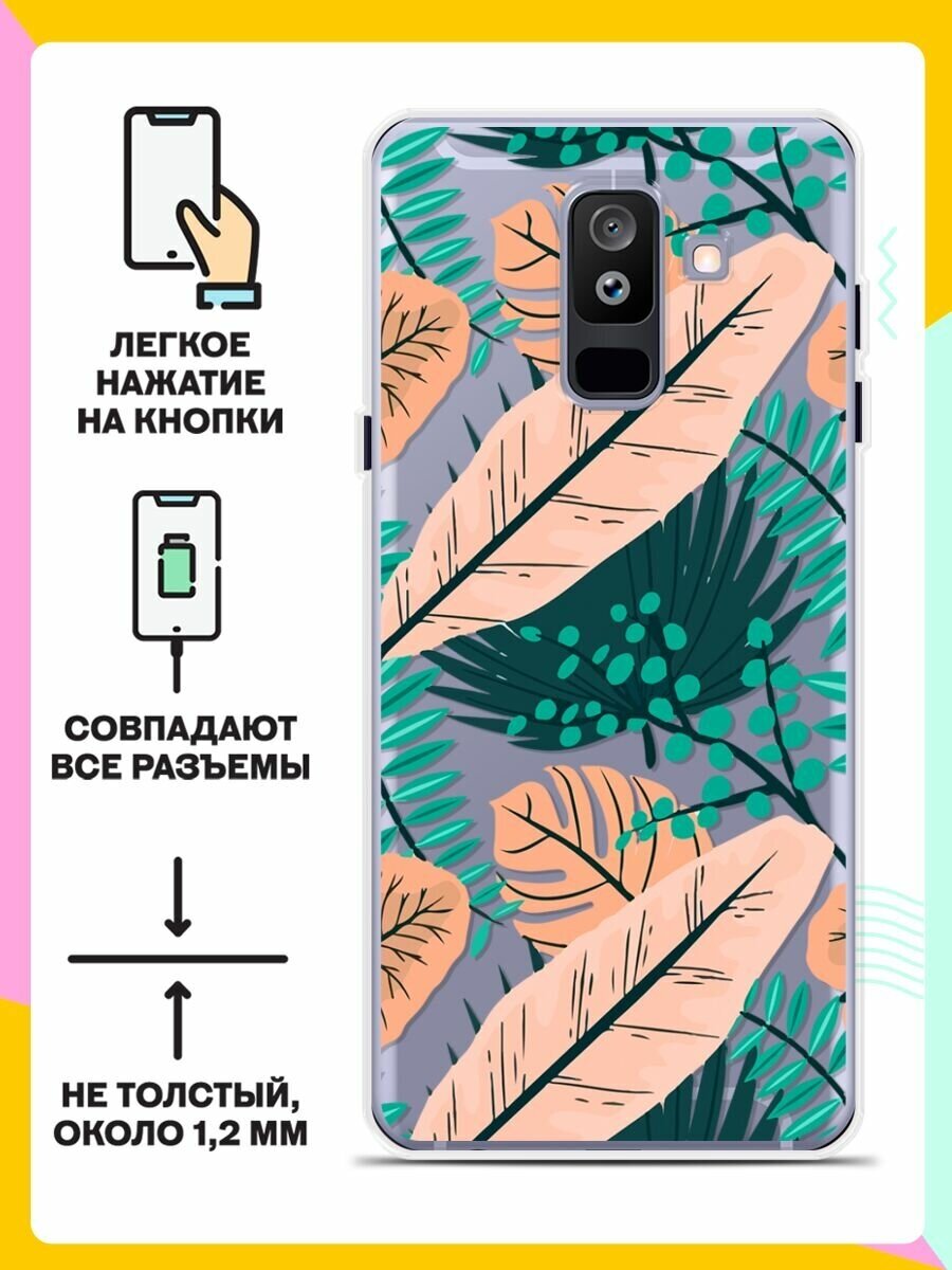 Силиконовый чехол на Samsung Galaxy A6 Plus (2018) Листья / для Самсунг Галакси А6 Плюс информация: