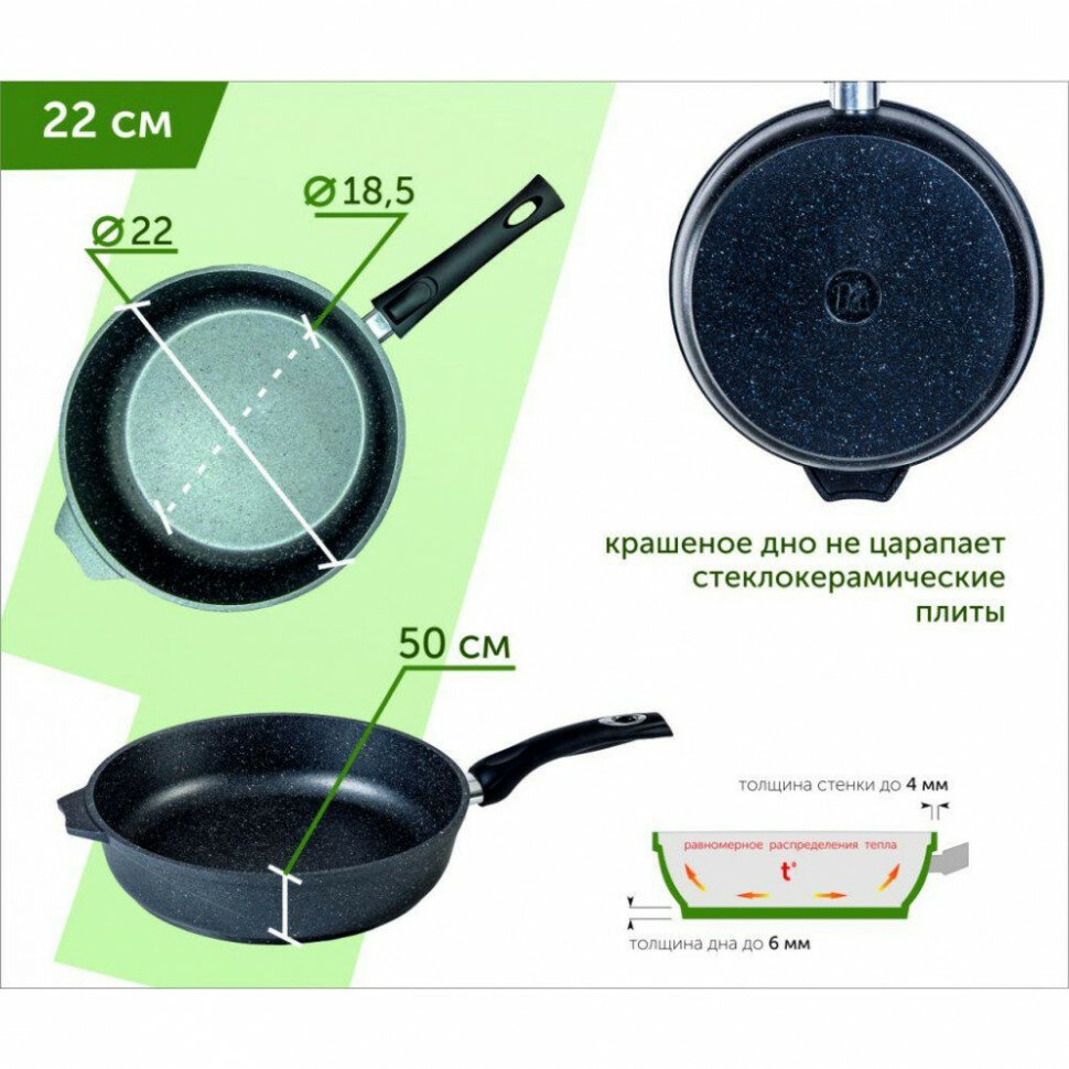 Мечта Гранит black 22802, Сковорода 22см с антипригарным покрытием информация: