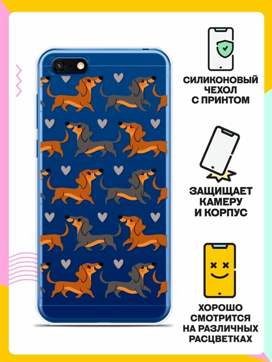Силиконовый чехол на Huawei Y5 Lite 2018 Узор из такс / для Хуавей У5 Лайт 2018 информация: