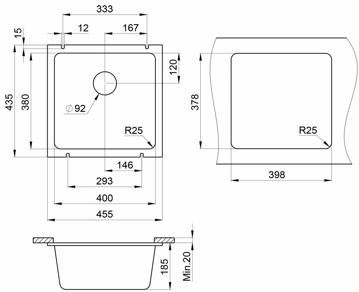 Мойка для кухни из искусственного камня Ulgran U-406-308, черный