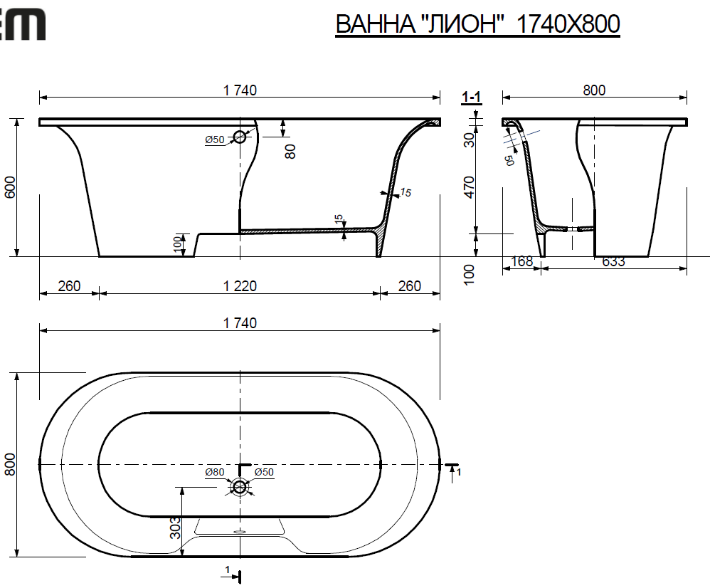 | Дополнительная информация | Диаметр слива 50 мм. |